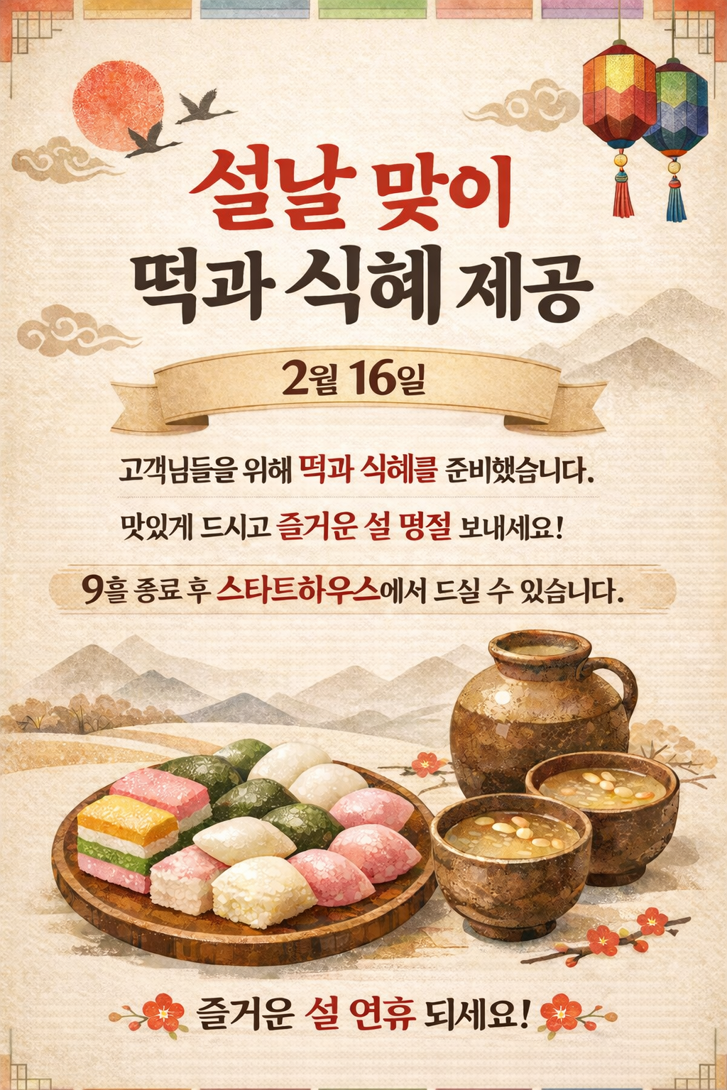 2월 16일 떡과 식혜 제공!